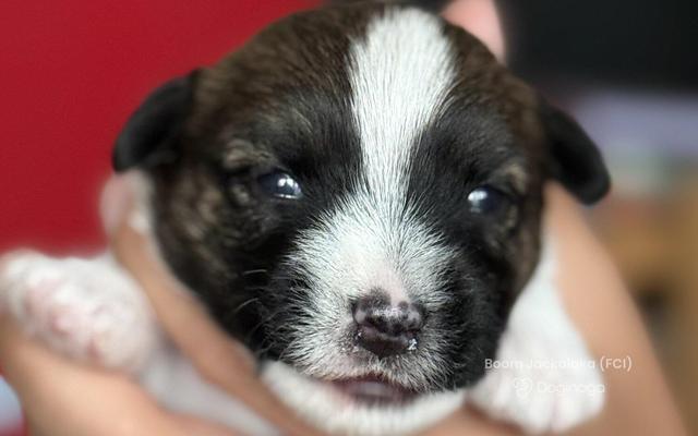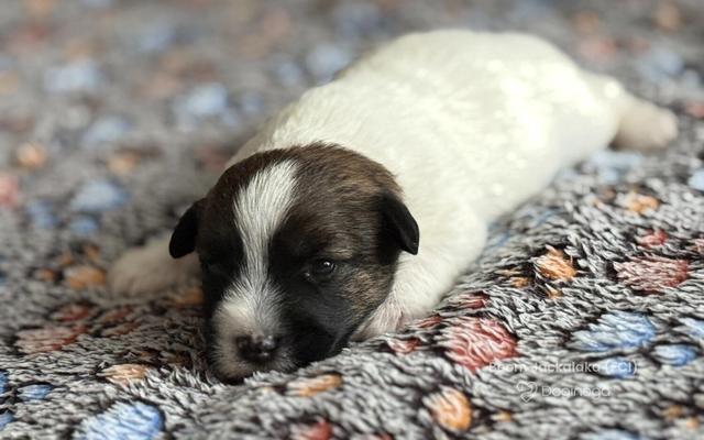 Piękny, silny i ruchliwy chłopak. Doskonale umaszczony. Bardzo towarzyski – wręcz domaga się atencji. Z pewnością wyrośnie na wspaniałego towarzysza wszelkich zabaw. Prawidłowo się rozwija i przybiera na wadze. Typ raczej małego łobuziaka. Odważny i szczęśliwy. Idealny dla aktywnej rodziny.