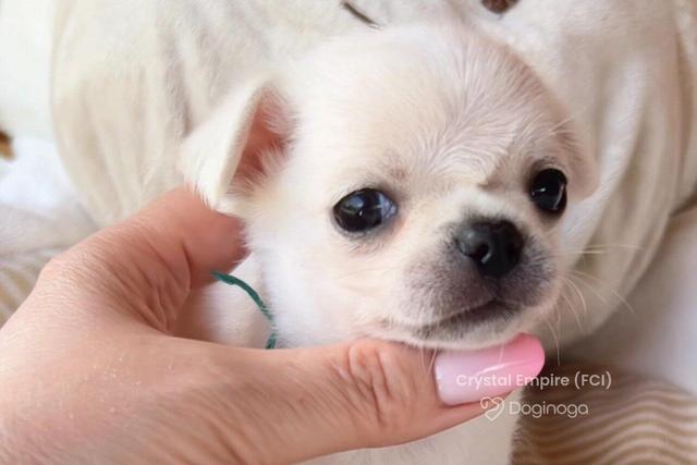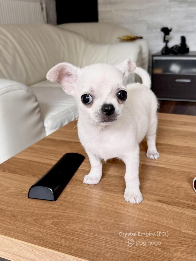 Dostępny uroczy chłopiec z wyjątkowego skojarzenia! Biały, krótkowłosy szczeniaczek o doskonałym czarnym pigmencie, dużych, wyrazistych oczach i głowie w typie jabłka. Maluszek zachwyca urodą i budową – to piesek, który przyciąga spojrzenia już od pierwszych chwil. Ojciec to nasz Interchampion Maks – pies o perfekcyjnej anatomii, doskonały przedstawiciel rasy, pochodzący z renomowanej hodowli na Ukrainie. Mama – przepiękna, importowana z Białorusi, wywodzi się z linii championów. Piesek ma fantastyczny genotyp i równie obiecujący charakter – jest odważny, ciekawski i bardzo przytulaśny. Zdrowy, bez wad, idealnie zapowiadający się zarówno jako piesek rodzinny, jak i potencjalny pupil wystawowy.