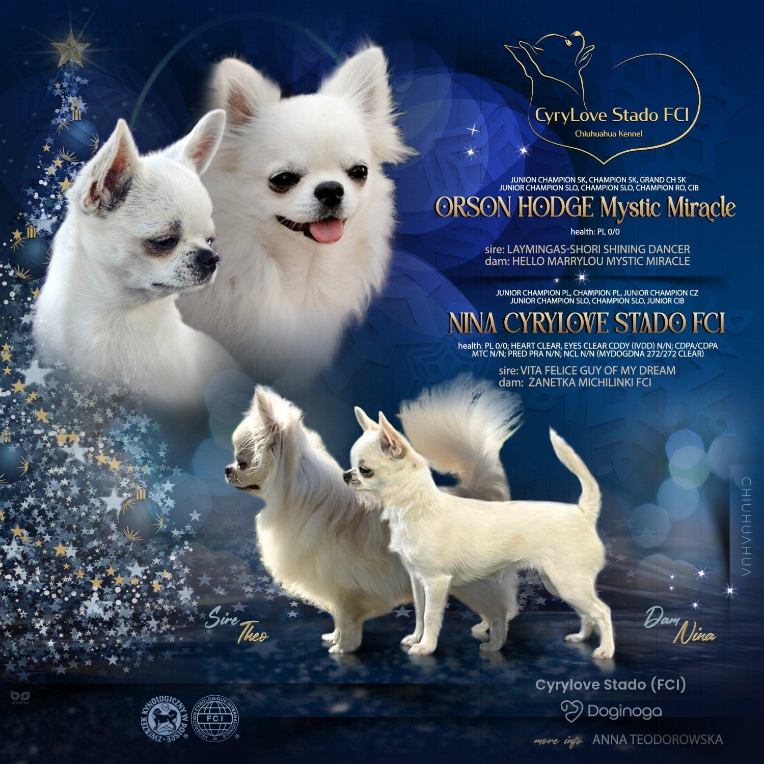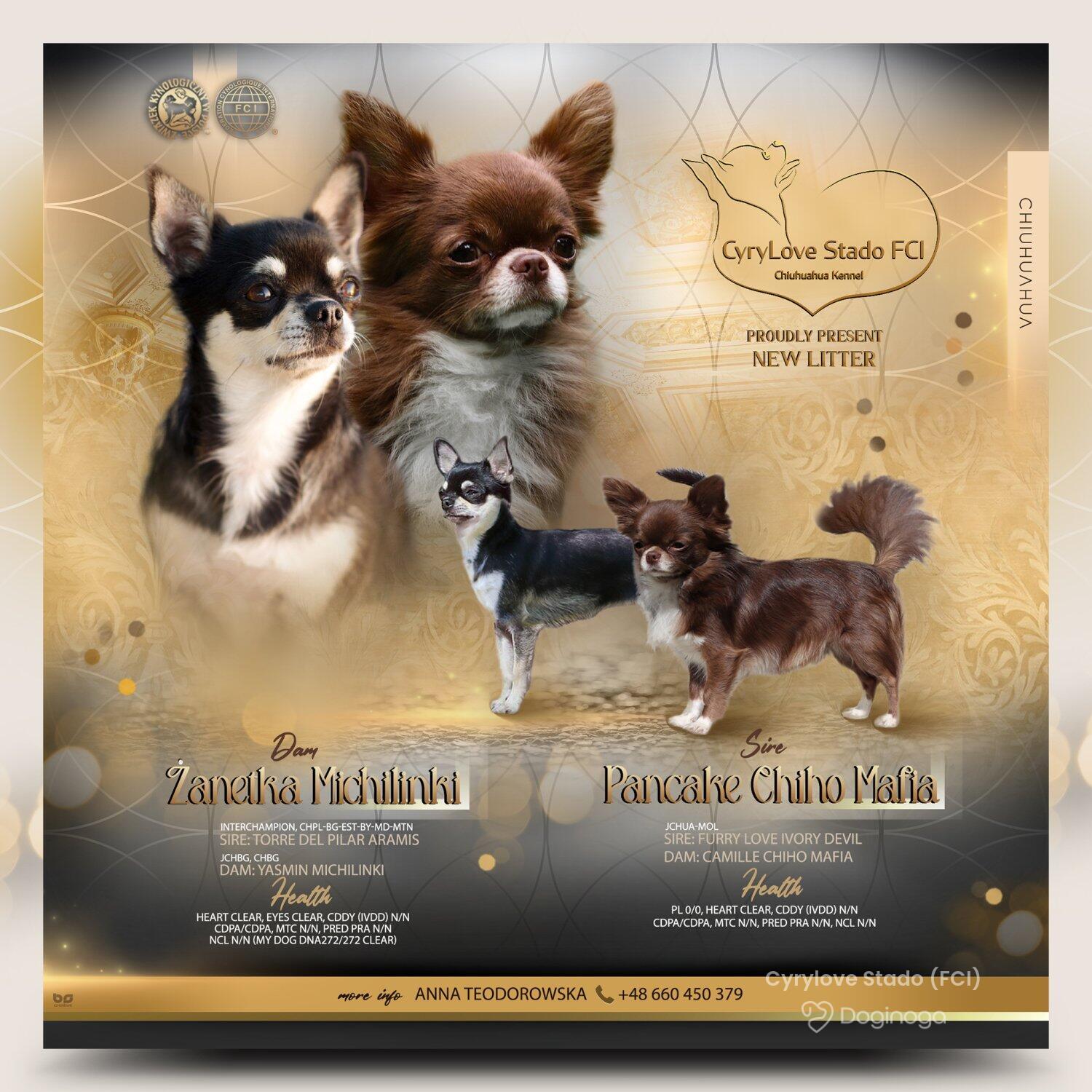 Nasza przygoda z kynologią rozpoczęła się od pieska Cyryla z hodowli Buziaczek FCI w Łodzi. To z nim zaczęłam jeździć na wystawy, to dzięki niemu poznałam mnóstwo wspaniałych ludzi z pasją i miłością do psów, to dla niego wybudowaliśmy dom i podporządkowaliśmy całe nasze dotychczasowe życie, to z nim zwiedziliśmy wiele krajów, to dla niego dokupiliśmy suczkę i zaczęliśmy myśleć o hodowli. W naszej hodowli kładziemy nacisk na zdrowie, wczesną neurostymulację i socjalizację. Nasze suczki nie są eksploatowane – mają mioty co dwa lata, aby miały czas na pełną regenerację. Co roku badamy ich serca, wykonujemy kompleksowe badania krwi oraz USG. Nasze psy są żywione karmami marek premium Bierzemy udział w wystawach zarówno w Polsce, jak i w Europie. Dla naszych szczeniąt szukamy domów, w których będą otoczone prawdziwą miłością, troską i dbałością o zdrowie oraz rozwój – zarówno fizyczny, jak i intelektualny. Bardzo ważny jest dla nas stały kontakt z rodzinami naszych szczeniąt – poniekąd stajemy się rodziną...