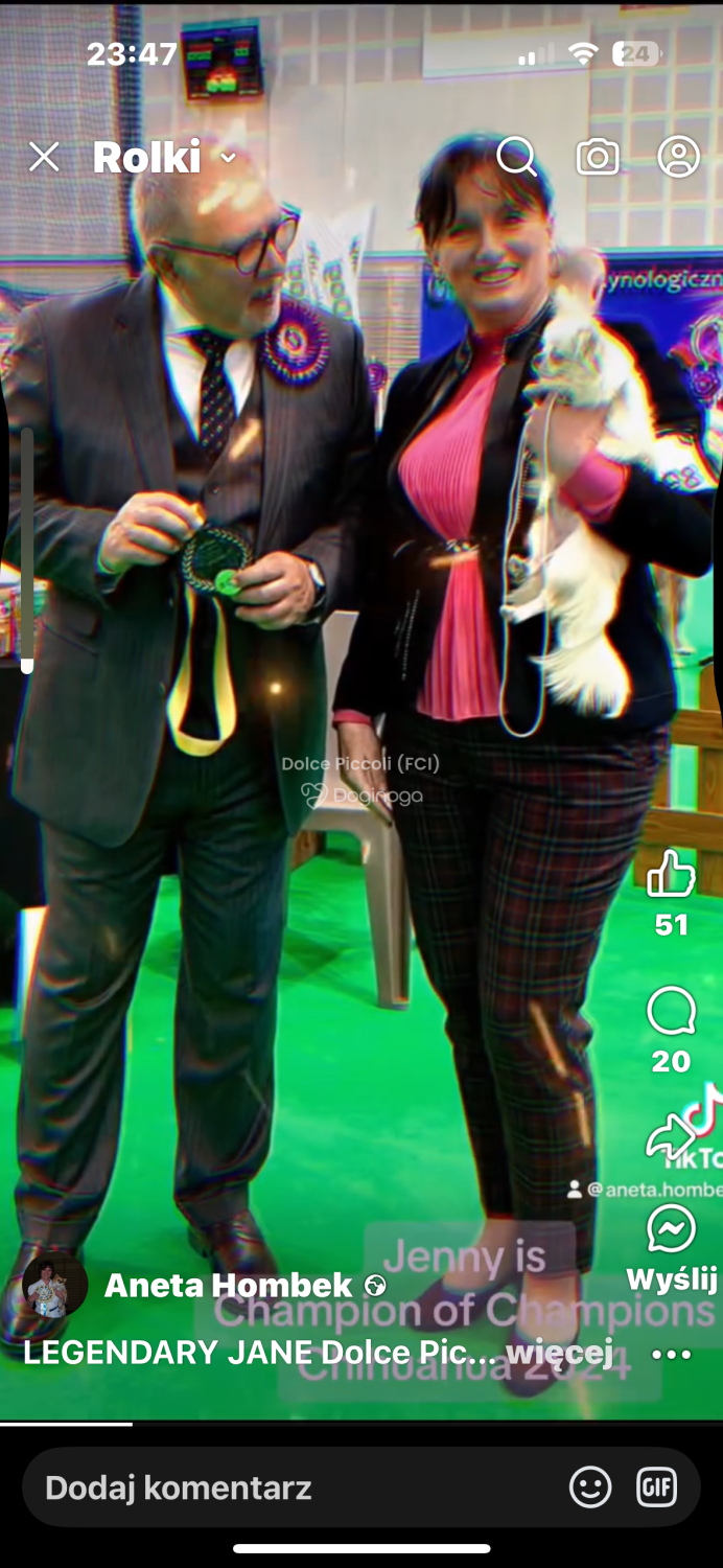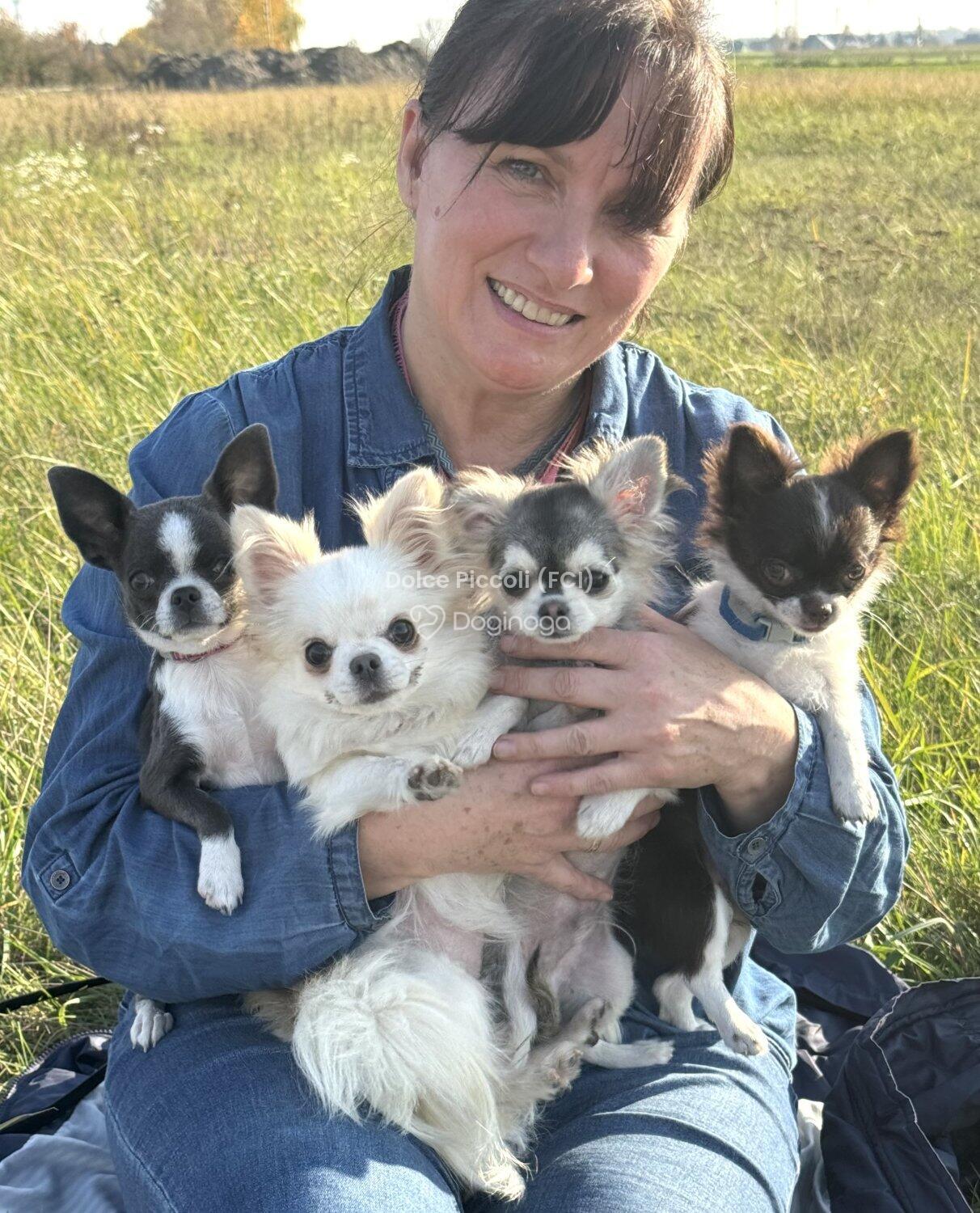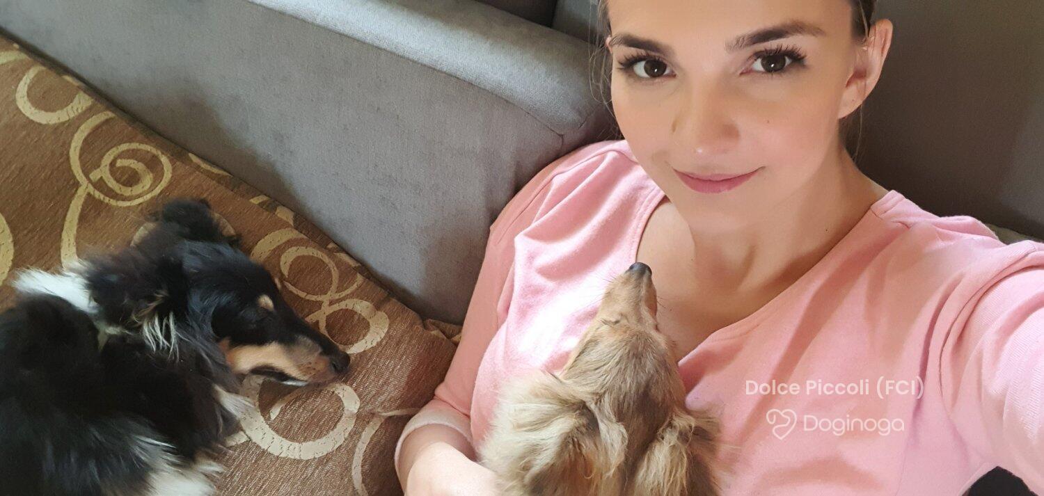 Mam na imię Patrycja. Psy towarzyszyły mi od dzieciństwa. Gdy poznałam mojego przyszłego męża, poznałam również jego mamę – Anetę Hombek – oraz hodowlę chihuahua, która istnieje od 2011 roku, a jej założycielką była właśnie Aneta. Zakochałam się totalnie! Z przyszłą teściową szybko złapałyśmy kontakt i wspólne tematy. Wtedy zaczęła się moja prawdziwa przygoda i zamiłowanie do kynologii – w pełnym tego słowa znaczeniu. Wspólne wyjazdy, spacery, szkolenia i treningi, wieczory spędzane z psami, porody, dzielenie chwil radosnych – pełnych sukcesów i codziennego życia naszych psów – ale też tych trudnych momentów, które niestety w hodowli się zdarzają. Razem z Anetą działam w Związku Kynologicznym w Polsce, oddział w Opolu. Brałam aktywny udział w pracach oddziału, a obecnie – wraz z teściową – jesteśmy członkiniami komitetu wystawowego naszych opolskich wystaw. Wspólnie uczestniczymy w szkoleniach o różnej tematyce kynologicznej i hodowlanej, co wzbogaca naszą wiedzę i pozwala prowadzić hodowlę na wysokim poziomie. Po kilku latach pojawiło się marzenie – owczarek szetlandzki. I pojawiła się ona – Zuzia, sheltie o umaszczeniu blue merle. Ostatecznie to ja zostałam hodowcą owczarków szetlandzkich oraz właścicielką przydomka hodowlanego, natomiast Aneta niezmiennie zajmuje się swoją miłością – chihuahua. Wspólnie prowadzimy naszą hodowlę pod nazwą Dolce Piccoli (FCI). Prywatnie jestem mężatką i mamą dwóch wspaniałych synów, którzy już teraz kochają psy. Pracuję zawodowo jako położna, jestem także dogoterapeutką i prowadzę terapię ręki z dziećmi w wieku przedszkolnym i szkolnym. Aneta to żona, mama i wspaniała babcia, wieloletni pedagog: polonistka, logopedka, oligofrenopedagożka i dogoterapeutka. Ma ogromne doświadczenie i wiedzę w tych dziedzinach, co zaowocowało stworzeniem naszej Akademii Dogoterapii i Edukacji. Nasze cudowne psy biorą udział w zajęciach z dziećmi, festynach, pokazach i akcjach charytatywnych. Jesteśmy psiarami w jak najlepszym znaczeniu tego słowa. Kochamy to, co robimy, a nasi najbliżsi wspierają nas na każdym kroku.