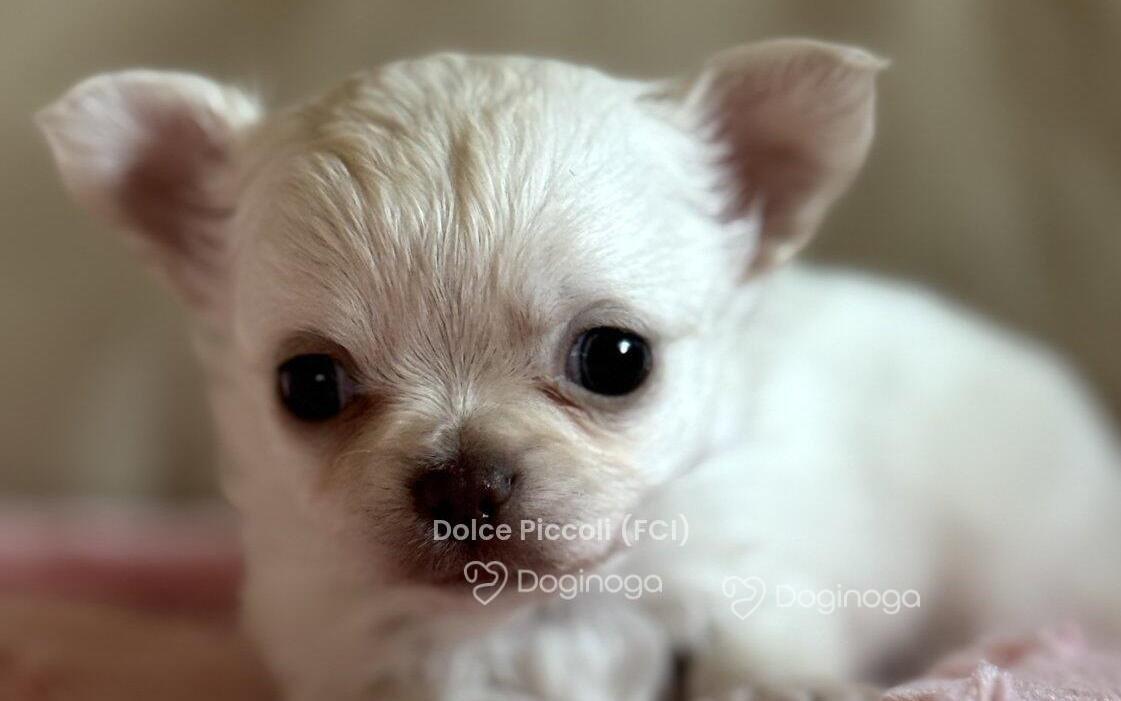 Suczka o pięknej główce i krótkiej kufie. Posiada komplet zębów i prawidłowy zgryz nożycowy. Jest jedynaczką w miocie, dlatego prowadzi życie prawdziwej księżniczki — codziennie rozpieszczana i wytulona. Bardzo ciekawa świata, powoli, lecz odważnie poznaje otoczenie i odkrywa kolejne zakamarki domu.