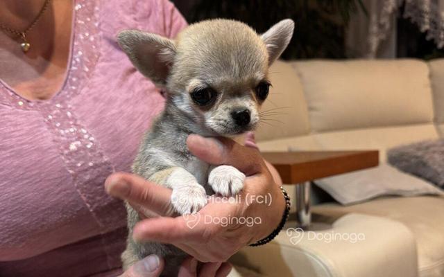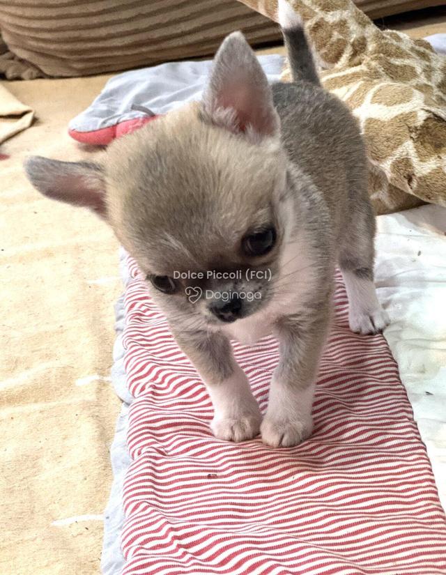 Dziewczynka niewielkich rozmiarów, w dorosłości najprawdopodobniej nie przekroczy 2 kg. Docelowy kolor: beżowy. Jest niezwykle słodką istotką — uwielbia się przytulać i zdecydowanie preferuje kontakt z człowiekiem niż z innymi psami. Charakteryzuje ją piękna głowa oraz oczka niczym koraliki.