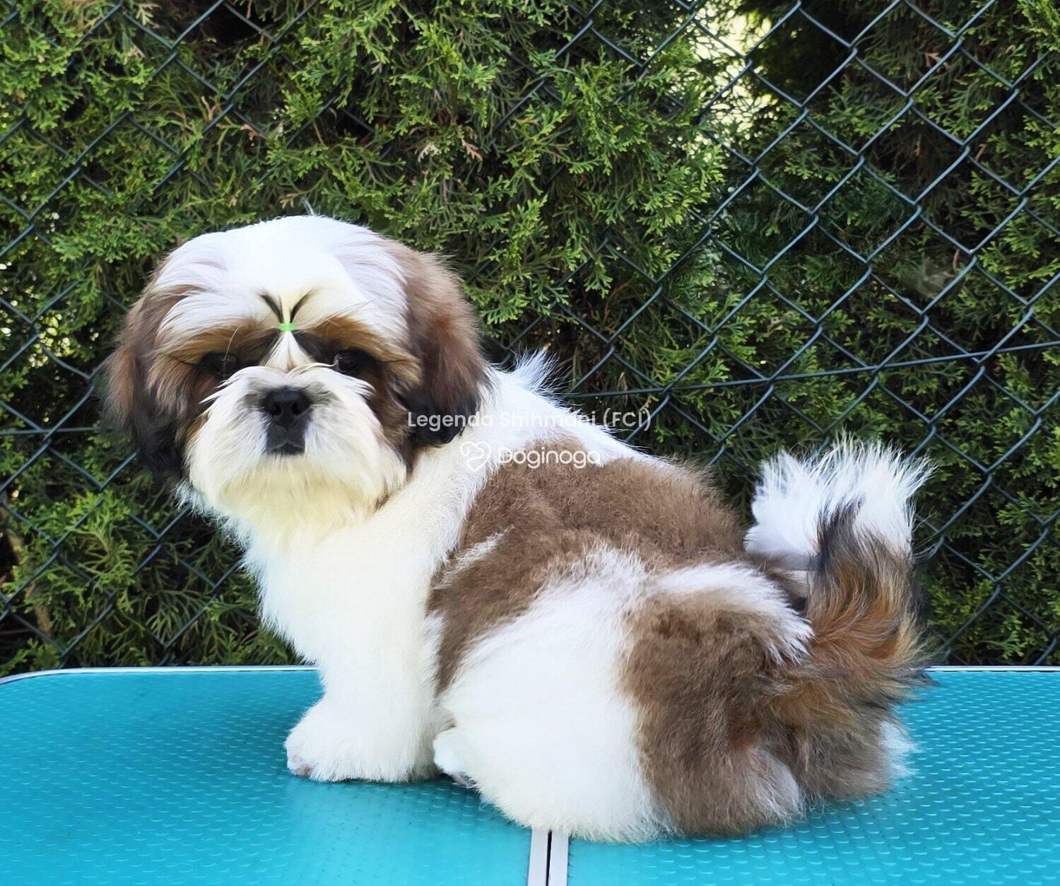 Shih TzuŁadny piesek w kolorze biało-złotym, mocny, miał zrobiony zabieg przepukliny pępkowej. Bardzo towarzyski, super socjalizowany, nauczony pić z poidełka, zasad czystości i groomingu. Ma wszystkie szczepienia włącznie z wścieklizną, wielokrotnie odrobaczony.