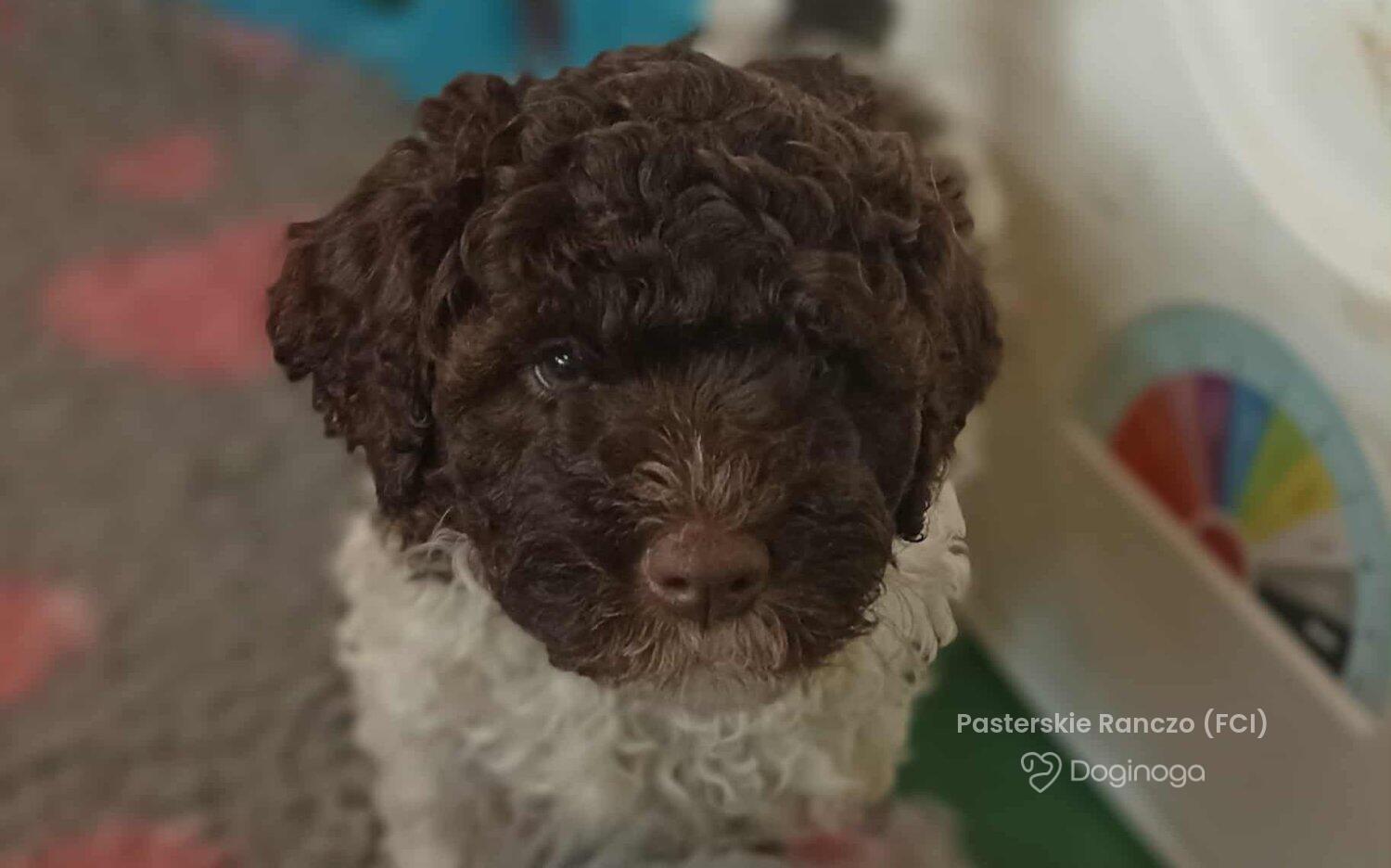 Lagotto romagnoloPiękny, biało-czekoladowy piesek, bez wad. Rodzice zdrowi, o doskonałych temperamentach. Więcej informacji o piesku będziemy zamieszczać w miarę jego rozwoju.