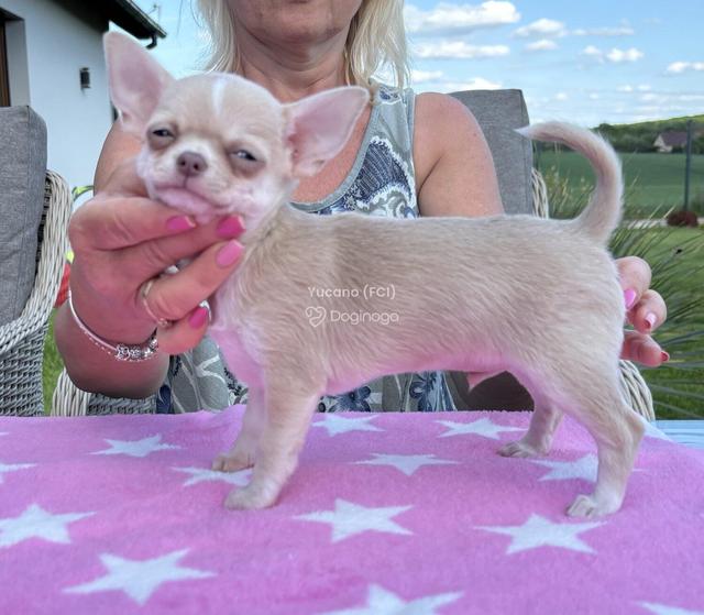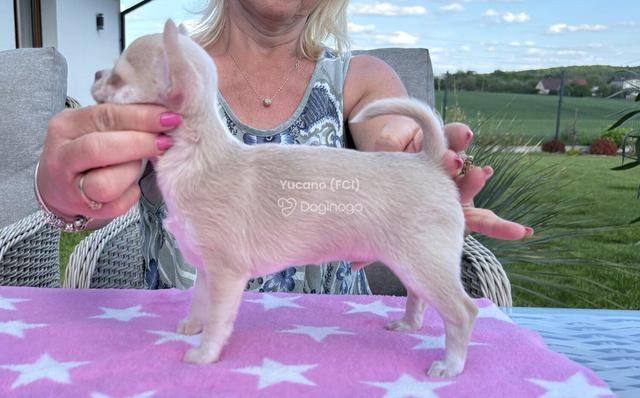 Bardzo wesoły, kontaktowy chłopczyk. Uwielbia psoty i zabawy z rodzeństwem. Lubi mizianie po brzuszku i z przyjemnością wyleguje się na kolanach, czekając na pieszczoty. Jest prawidłowo zbudowany, bez wad anatomicznych, o charakterystycznej, jabłkowatej głowie. Chłopczyk rokuje wystawowo, a jednocześnie doskonale odnajdzie się jako uroczy uczeń, odpoczywający na miękkiej podusi u boku swojego nowego człowieka. Szczenię jest aktywne i otwarte na świat. Docelowa waga: około 2,8 kg. W celu uzyskania dodatkowych informacji prosimy o kontakt. W przypadku sprzedaży za granicę RP piesek otrzyma rodowód eksportowy.
